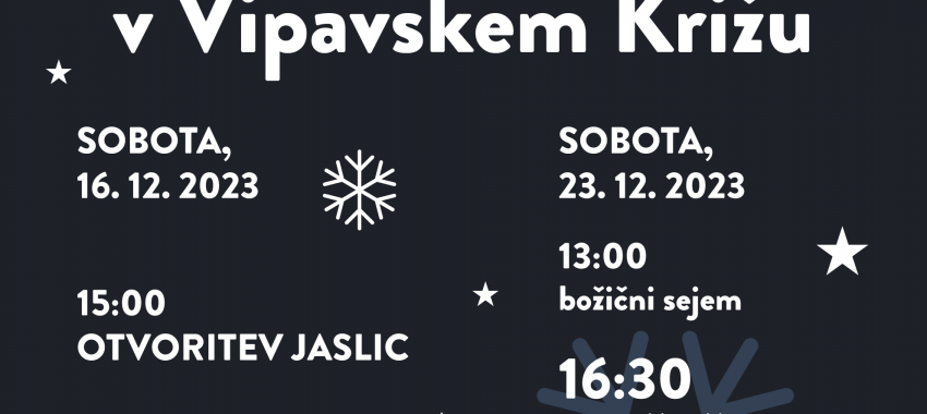 - Brezplačen ogled jaslic v grajski kleti in v galeriji Vipavski Križ, v prostorih krajevne skupnosti